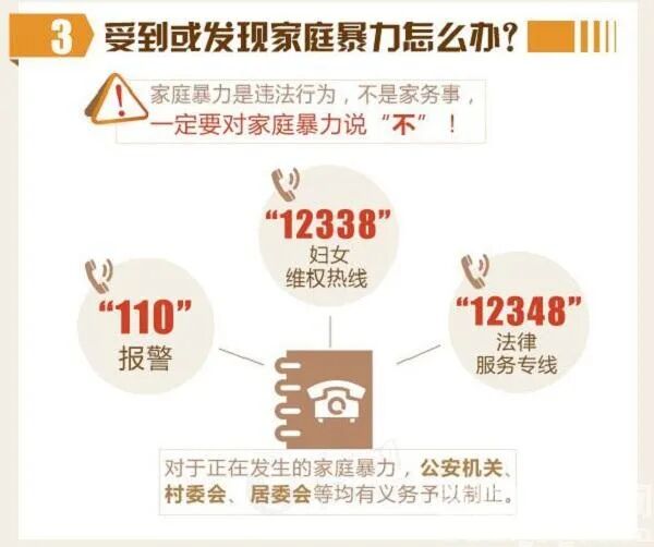 沉默、妥协会助长暴力的蔓延,只有勇敢利用法律武器保护自己和他人,才能制止暴力的发生。如果你曾是家庭暴力的受害者,如果血淋淋的家庭暴力正在你周围发生,请一定勇敢站出来大声说“不”!